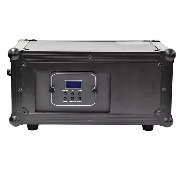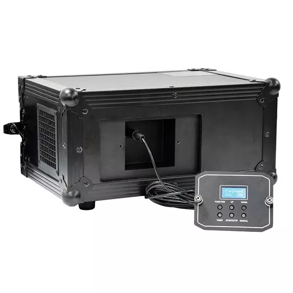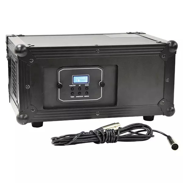 Professional high output haze generator built into a sturdy flight case. Operated via DMX512 signal or in auto-timer mode from the onboard digital control panel. Instant thermal design provides fast response to control signals and a DC fan offers precise control over air-flow. Designed to produce high volumes of haze output on demand with precision control.