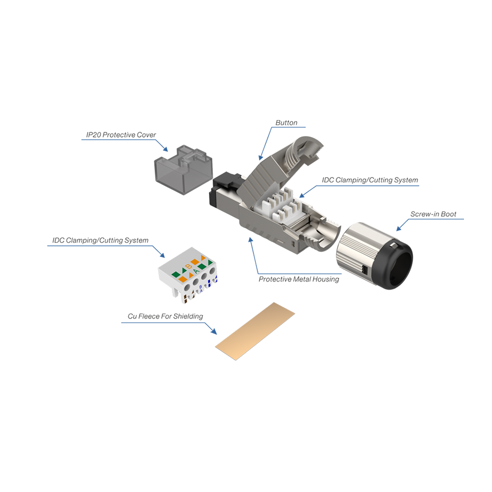 • CAT6A field connector, full shielded, screw-in boot type,toolless termination