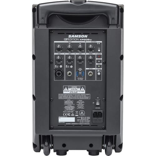 The Samson Expedition XP208w Rechargeable Portable PA is the perfect solution for anyone who needs great-sounding mobile audio. With 200 watts of power, 20 hours of battery life, a 4-channel mixer and Bluetooth audio, the XP208w offers big sound to musicians, DJs or those just hanging around the barbeque. The system includes a wireless handheld microphone for completely cord-free performance.