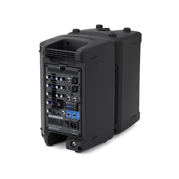 The XP300 speaker enclosures feature 1 3/8″ speaker stands mounts, as well as a tilt-back design that allows them to be used as stage monitors. The mixer section can be removed and mounted on any standard mic stand using the Samson SMS308 Mixer Stand Holder (sold separately). Lastly, two 10′ speaker cables are included with the system.