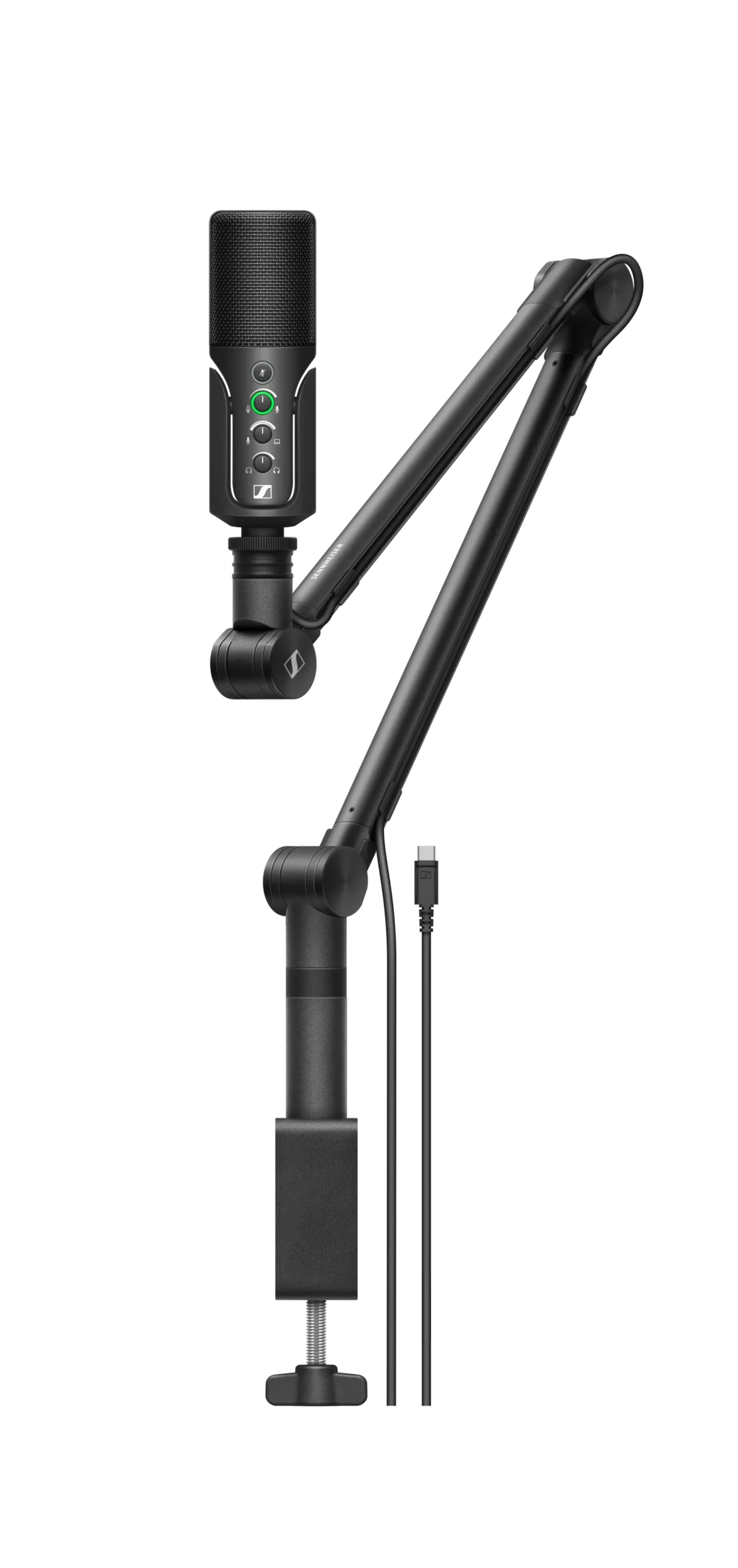 - Profile Streaming Set includes microphone, boom arm with integrated cable management, 3 m USB-C cable, and mic pouch