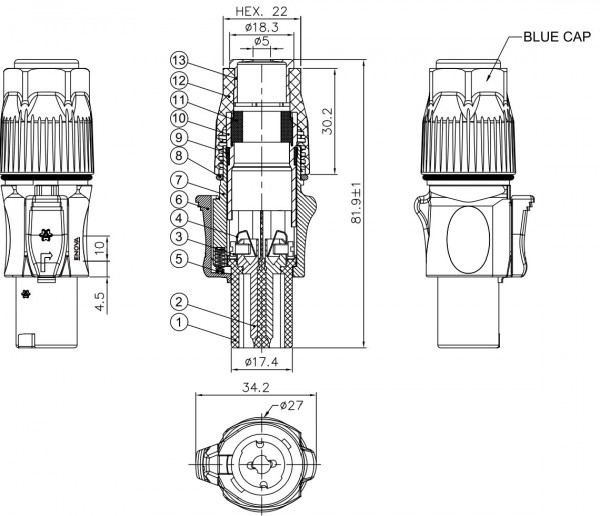 SP24FP – Speaker Connector with 4 pin Female Inline, Silver