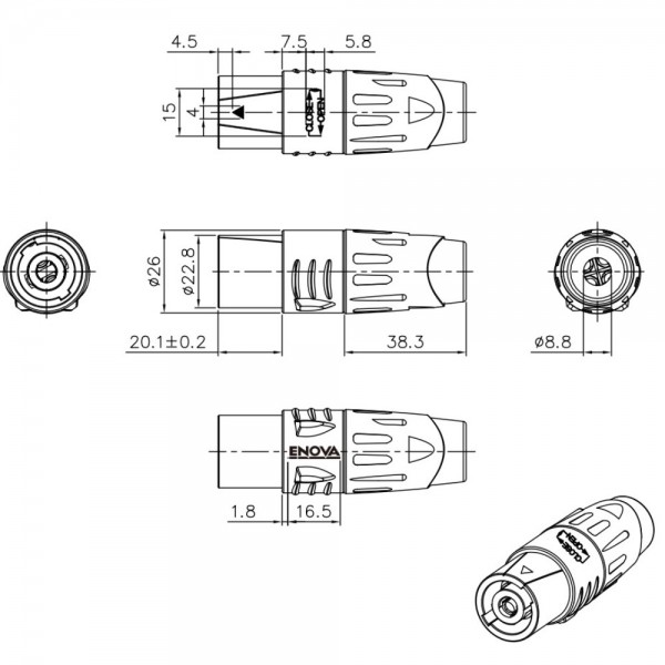 SP24MN – Loudspeaker connection 4-pin, metal housing male