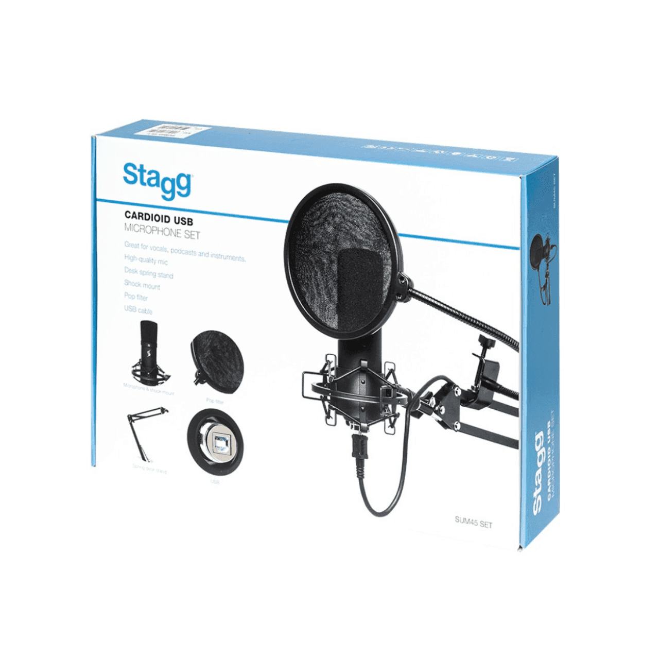 Cardioid USB Microphone set with Microphone, Stand, Shock Mount, Pop Filter, and USB cable