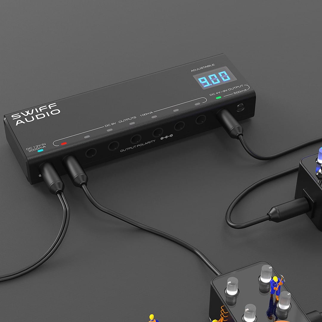 High Current Capacity:Â The adjustable output supports up to 500mA, accommodating high-draw pedals with ease. Overall, the unit delivers up to 2000mA of current.