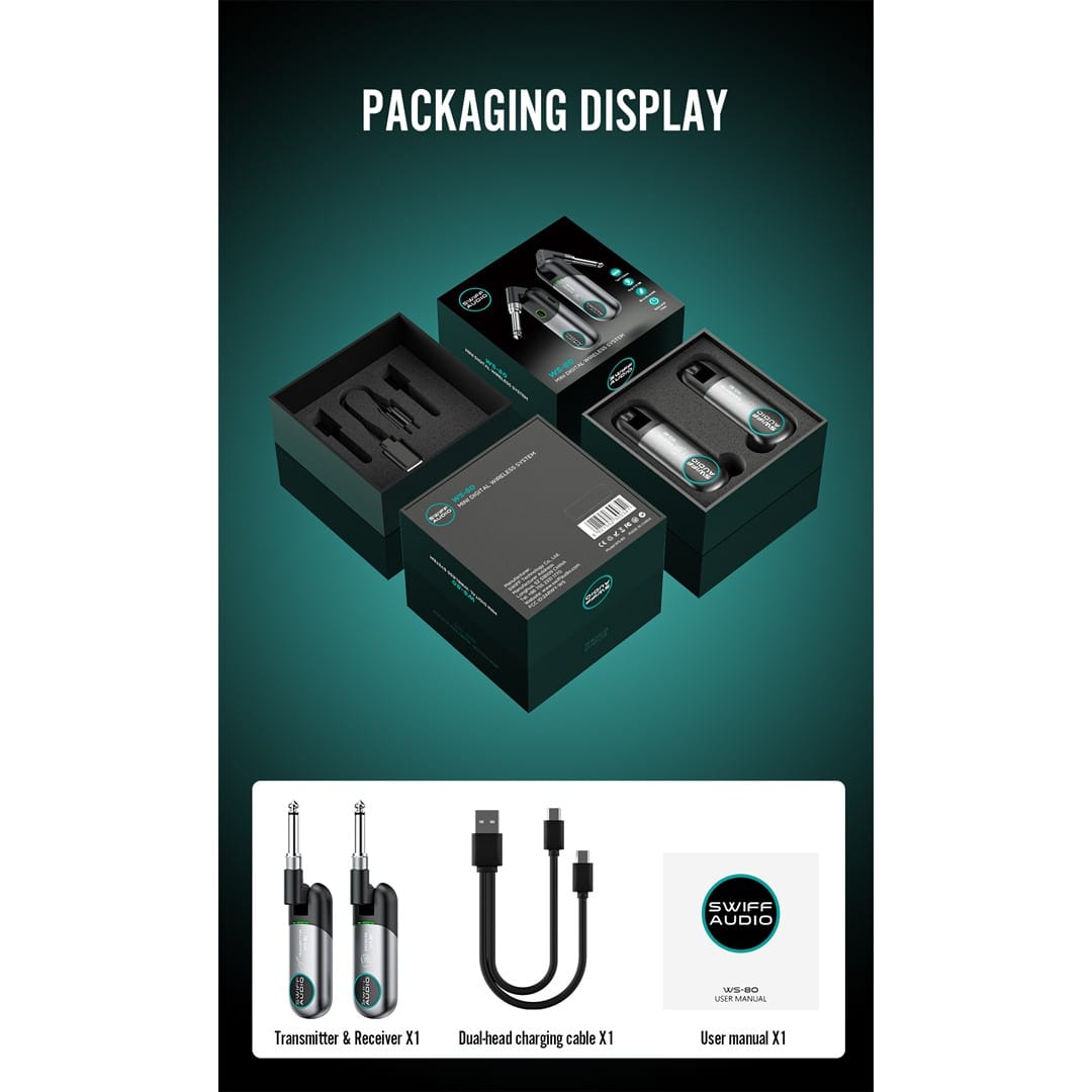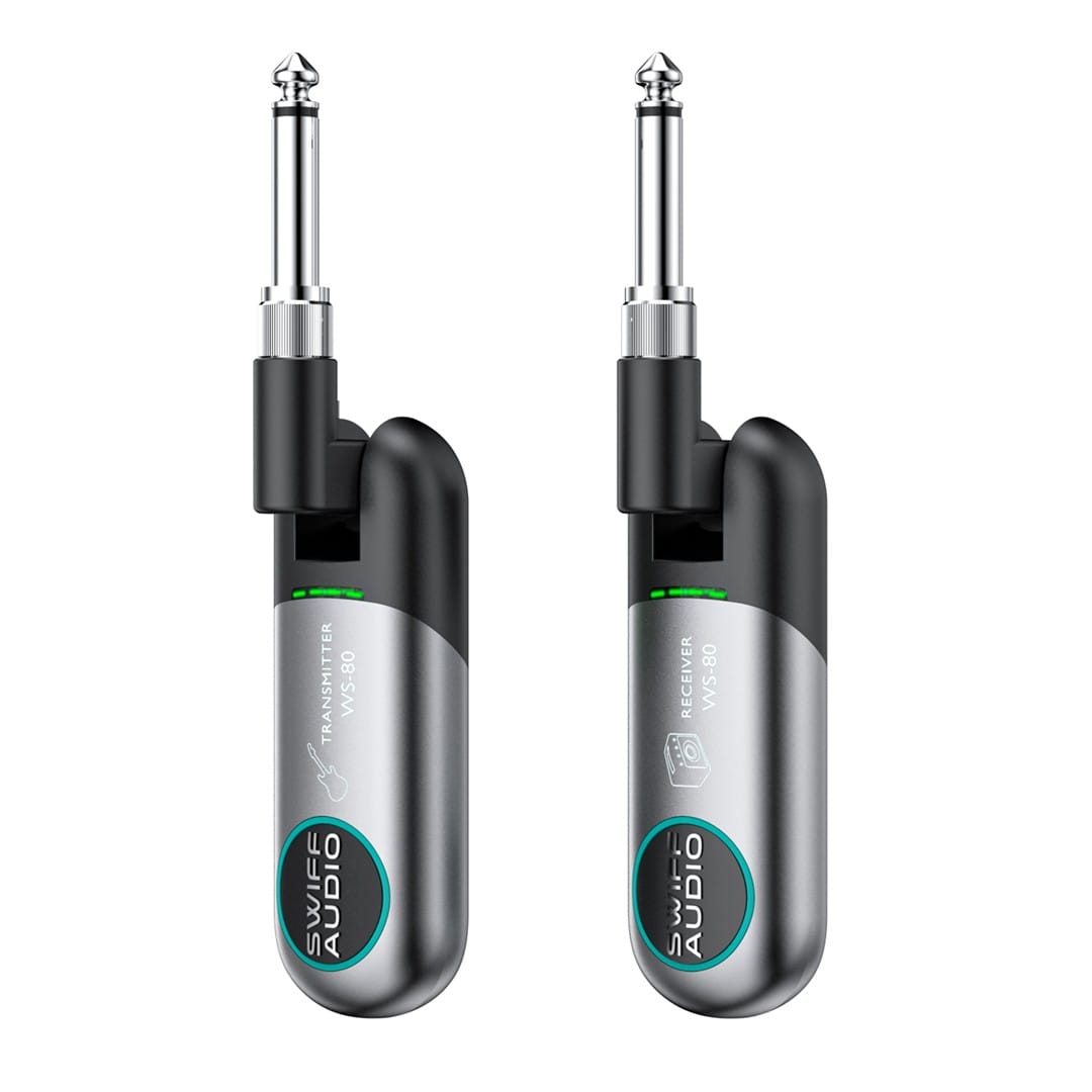 The SWIFF Audio WS-80 Wireless System offers musicians a reliable and high-quality wireless audio solution. With its universal compatibility, extended transmission range, low latency, and rechargeable battery, it ensures seamless performances without the hassle of cables.