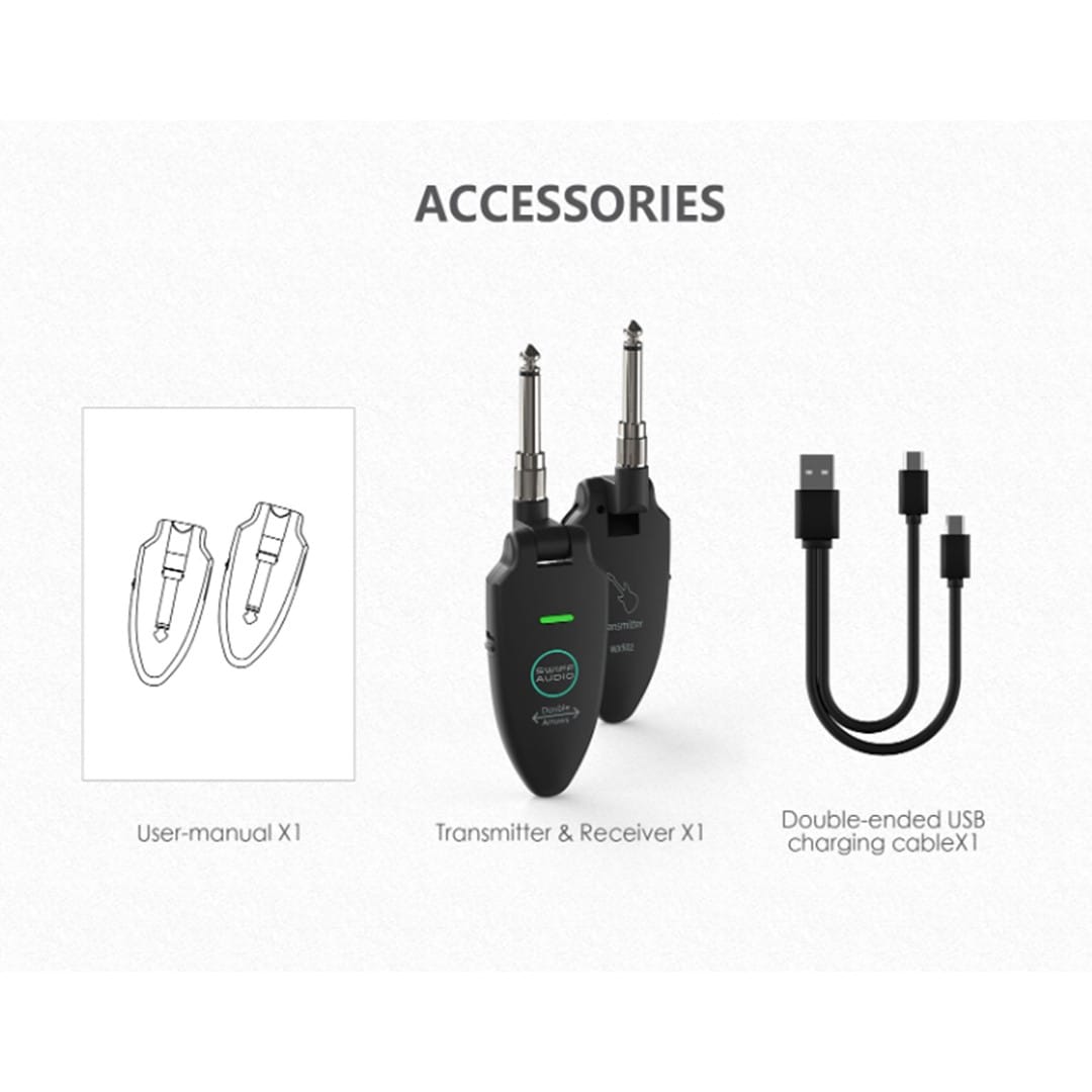 Wireless compatibility: The WX-502 works with all 6.35 mm and 3.5 mm audio interface devices. This makes it suitable for electric guitars, basses, keyboards, and more.