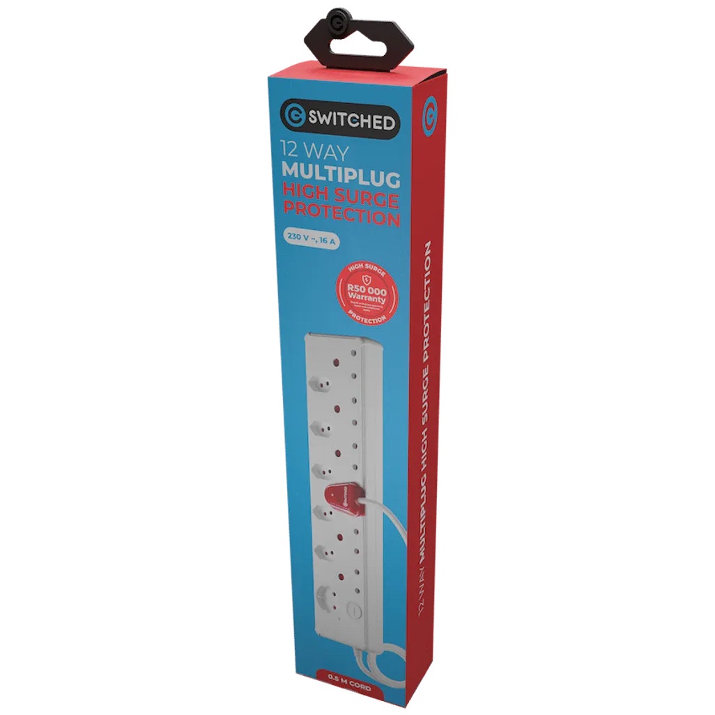 Keep your home or office electronics safe and fully powered with the Switched 12-Way High Surge Protector Multiplug. Designed to handle South Africa’s unpredictable power environment, this multiplug offers 1140 Joules of surge protection and supports up to 12 devices simultaneously. Whether you’re powering computers, TVs, kitchen appliances, or charging devices, it gives you peace of mind with built-in safety and performance features.Engineered for local needs, this surge protector multiplug includes overload protection and an easy-reset button, shielding your devices from electrical spikes caused by load shedding or lightning strikes. Compact and durable, the 0.5m cable makes it ideal for spaces where a short cord is sufficient-like desks, counters, or entertainment units.Enjoy smart design with safety shutters, preventing accidental contact and ensuring child safety. With a Switched branded build known for reliability, this high-performance plug is essential in any South African household or workplace.
