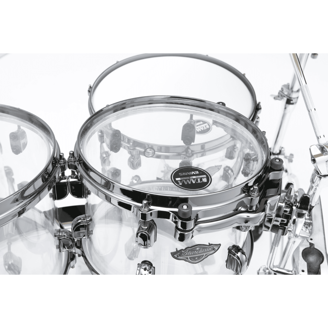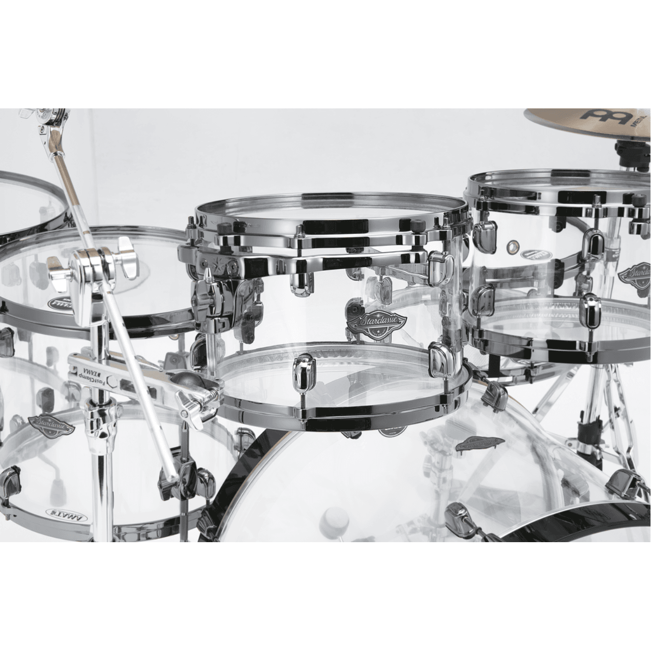 Since the 1970s, acrylic drums have been sought after for their unique sound and sleek look. Over the last two decades, TAMA has released limited edition acrylic drum kits of our own, starting with the Starclassic Mirage in 2007. To commemorate TAMA’s beginnings, the Starclassic Mirage will return as a limited edition 50th Anniversary model. Characterized by strong attack and thunderous tone, Starclassic Mirage’s seamless acrylic shells delivers unmatched sound and stunning looks. In addition to its controlled, punchy, and rich sound, acrylic remains unaffected by changing climates, making it perfect for use in any environment. The darker Black Nickel shell hardware perfectly complements the clear shells, ensuring that audiences and drummers alike will be instantly captivated by their stage presence.