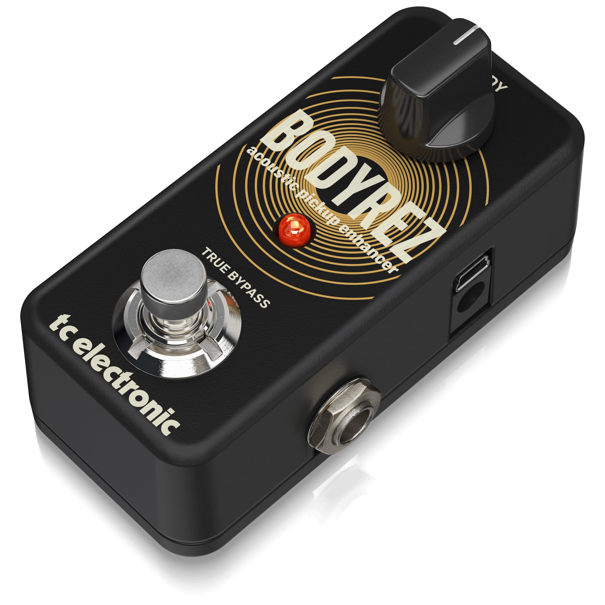 BODYREZ is the new must-have tool for every acoustic player out there. Designed to restore the natural acoustic resonance of your instrument when using under-saddle pickups, BODYREZ gives you a more pristine sound simply with the turn of a single knob.
