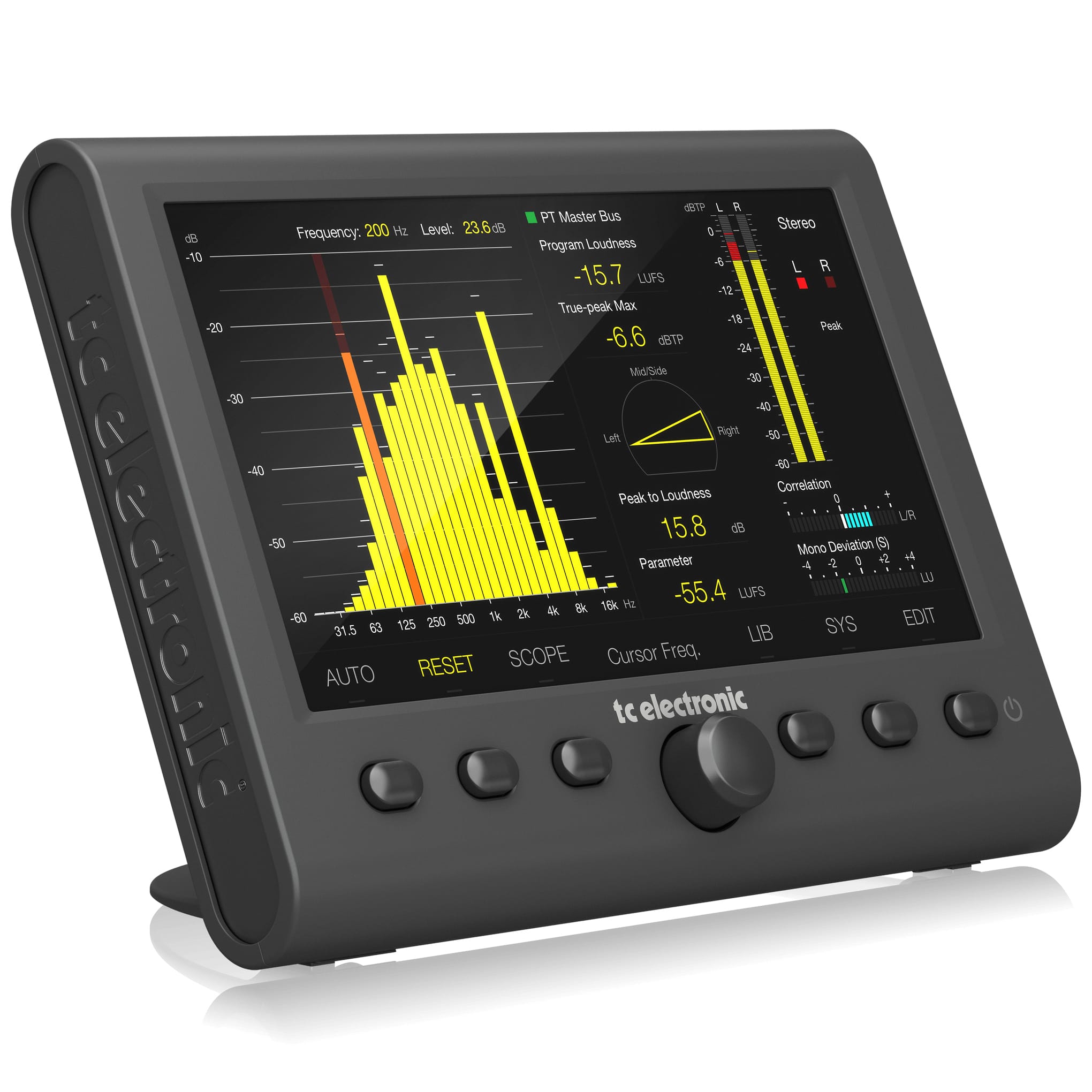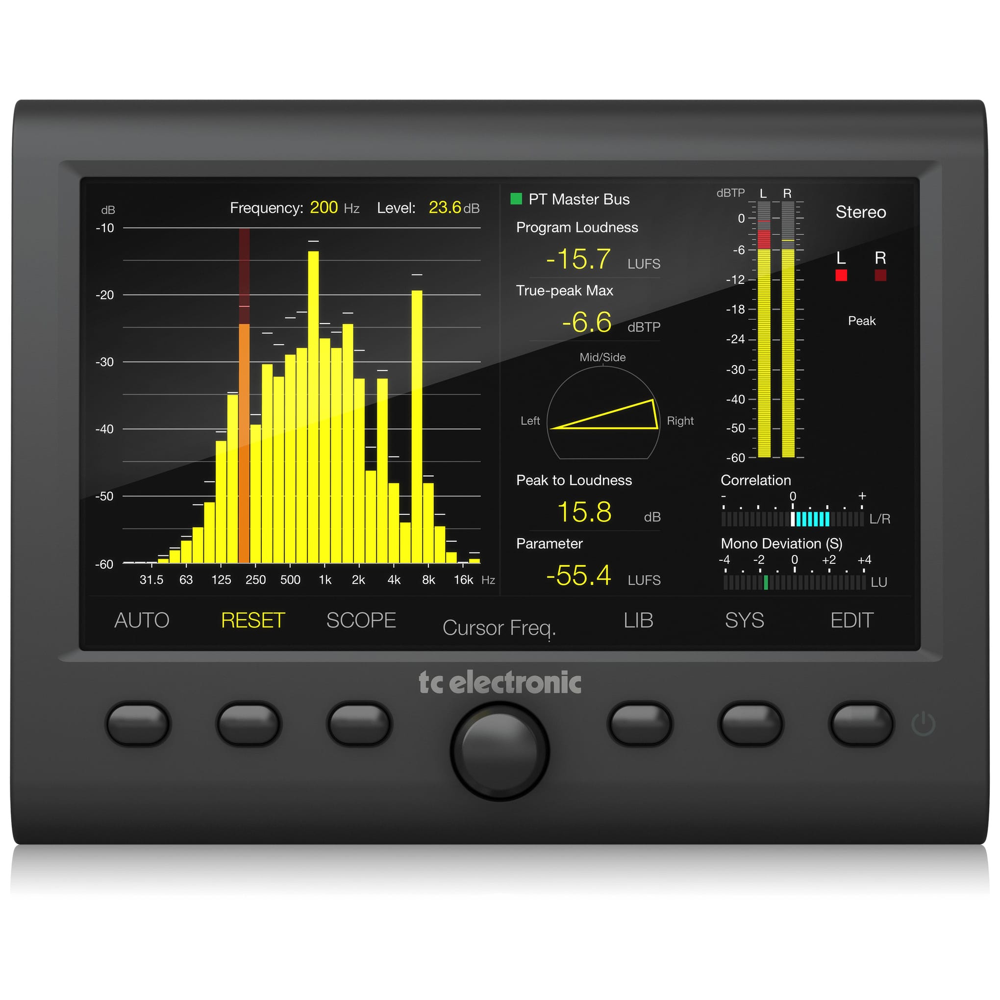 The CLARITY M STEREO provides a comprehensive set of precision tools essential to the success of any audio producer. Ideally suited to stereo mixing, mastering and post-production, CLARITY M STEREO’s 7″ high-resolution LCD display provides a wealth of monitoring information at-a-glance via a single screen. Metering options include; the legendary LM6 Loudness Radar Meter; a state-of-the-art true peak meter; downmix compliance; stereo correlation; and a RTA (Real Time Analyzer).