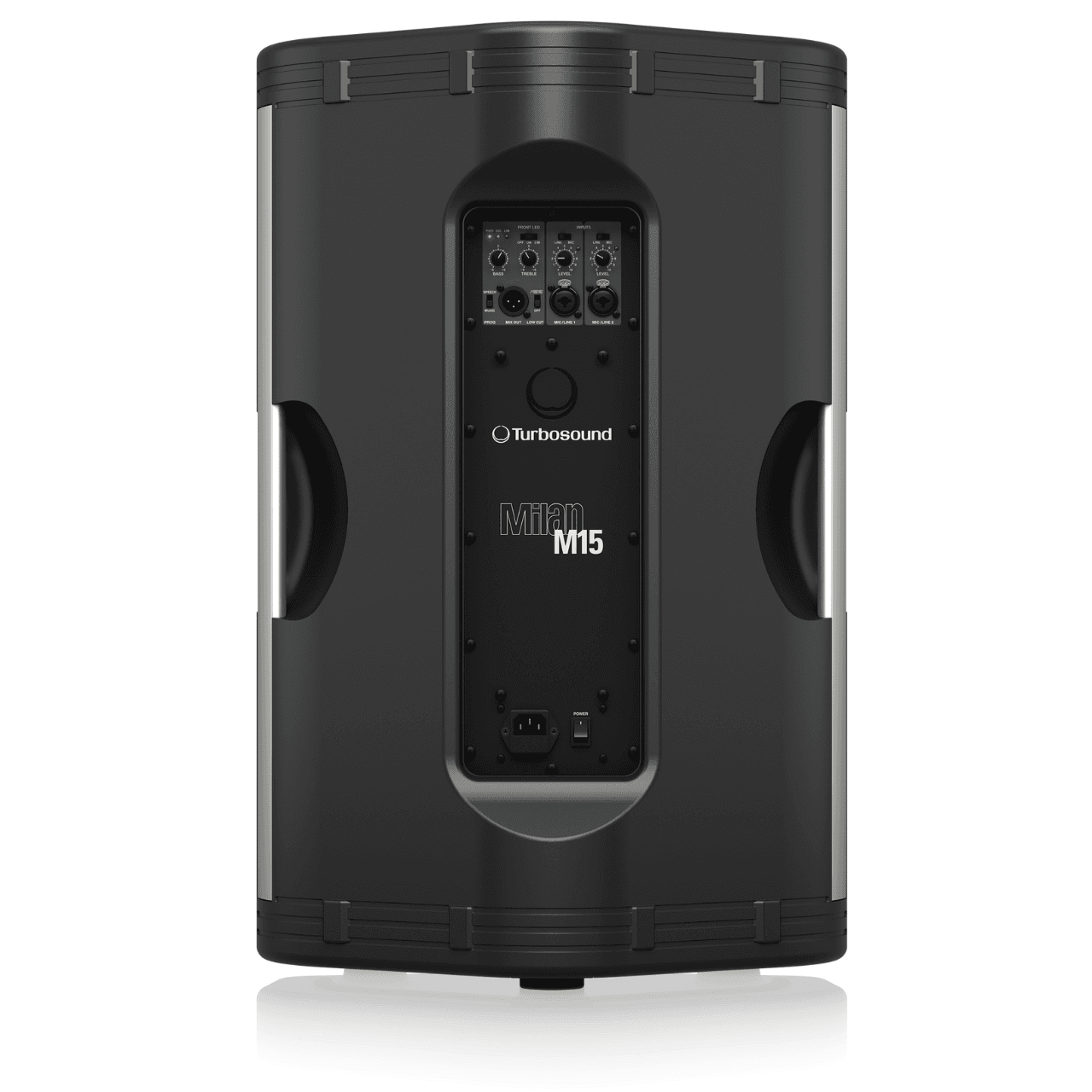 The 1,100-Watt full range MILAN M15 is a portable 15″ two-way powered loudspeaker featuring: two independent input channels with Mic and Line Inputs, selectable via a Mic/Line switch; a two-band master EQ (Bass, Treble); intelligent Limiting; and a Mix Out function for connecting additional powered loudspeakers for easy system expansion.