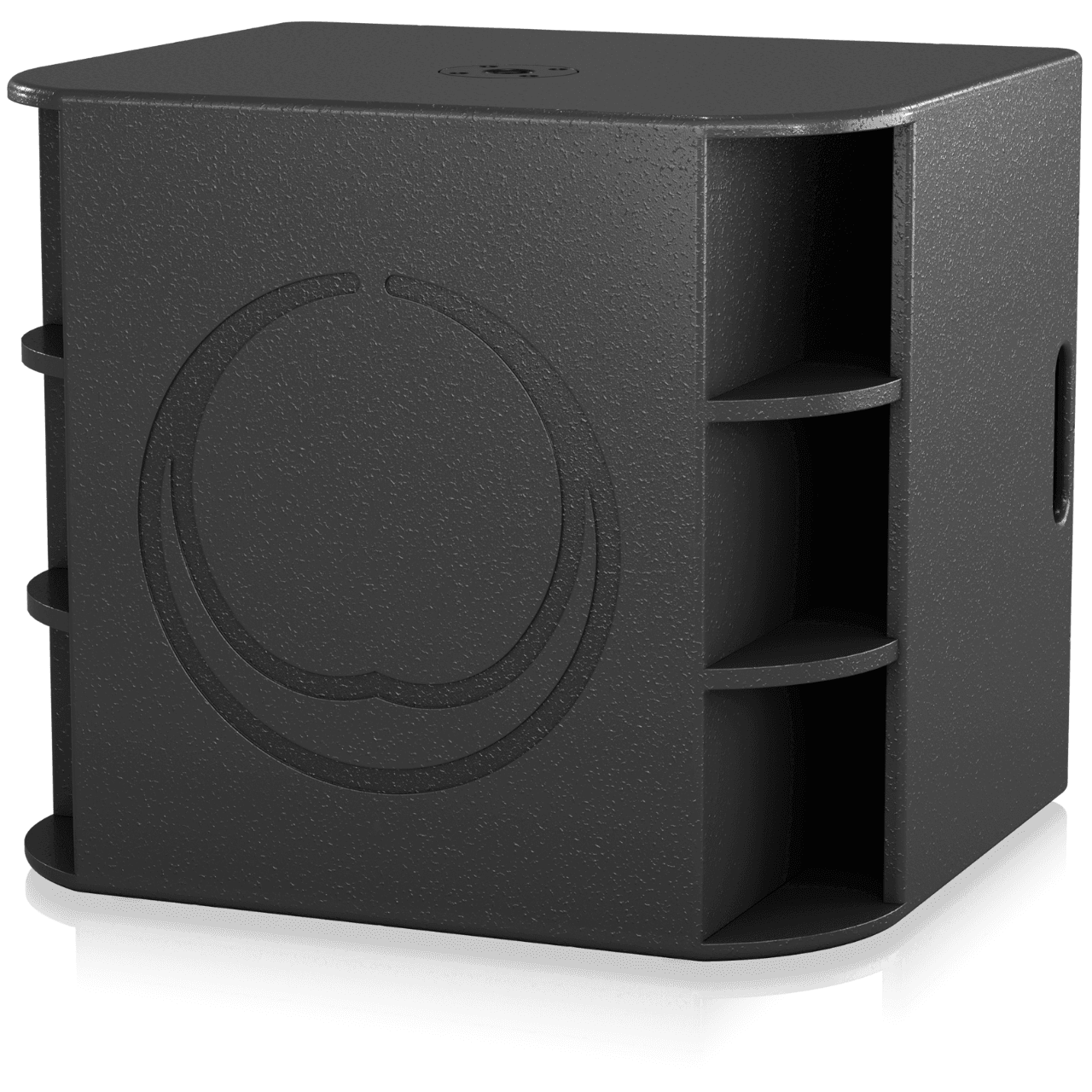 Bandpass enclosures are extremely efficient, creating maximum bass output within a specific frequency range by increasing the acoustic load presented to the driver. The low distortion bandpass design utilised in the M18B reinforces the bass musical instrument frequencies, and steep cut-off slopes ensure an effective acoustic transition for use with MILAN Series full-range loudspeakers. A typical application could consist of an M18B providing the low-frequency bass extension for one, or two MILAN Series top cabinets.