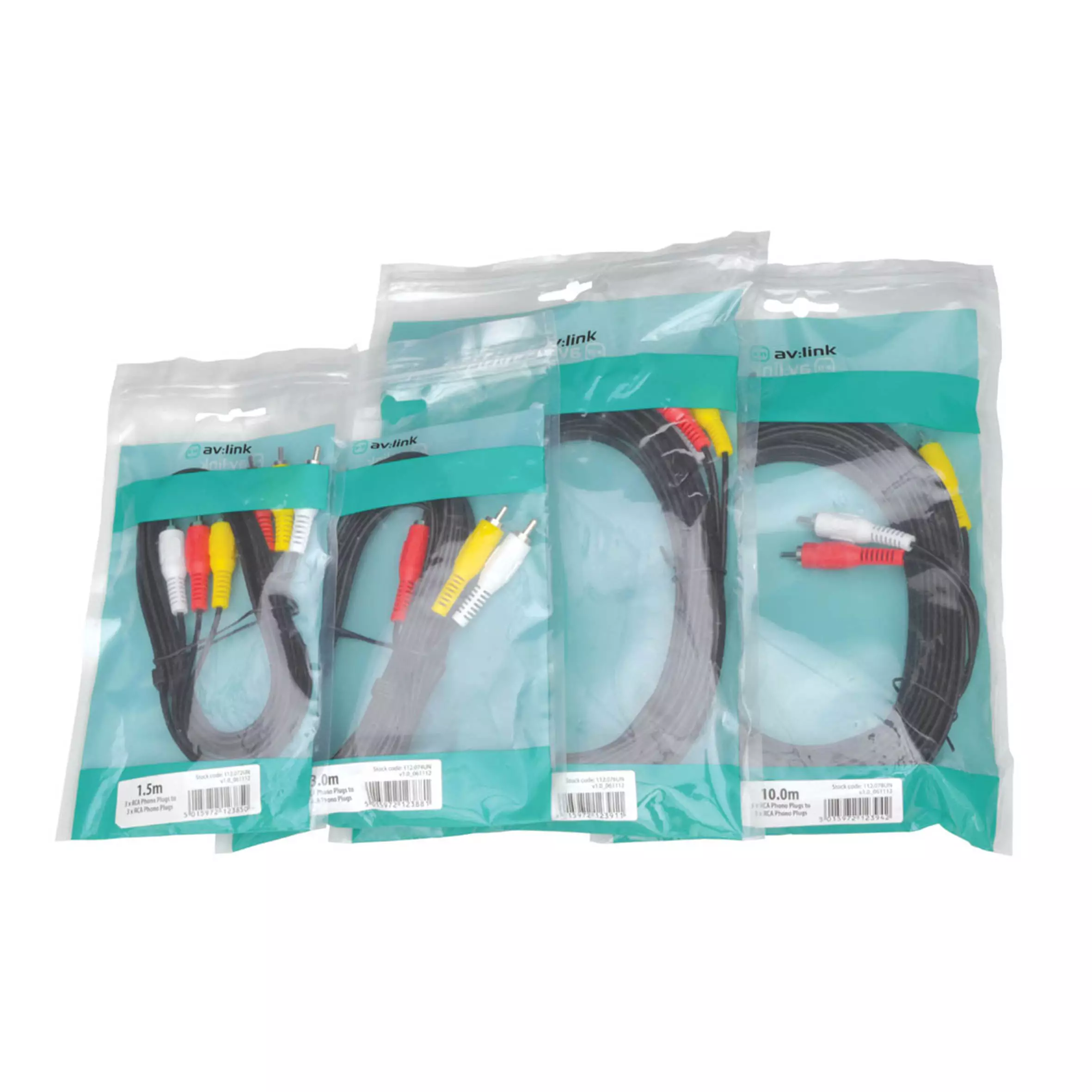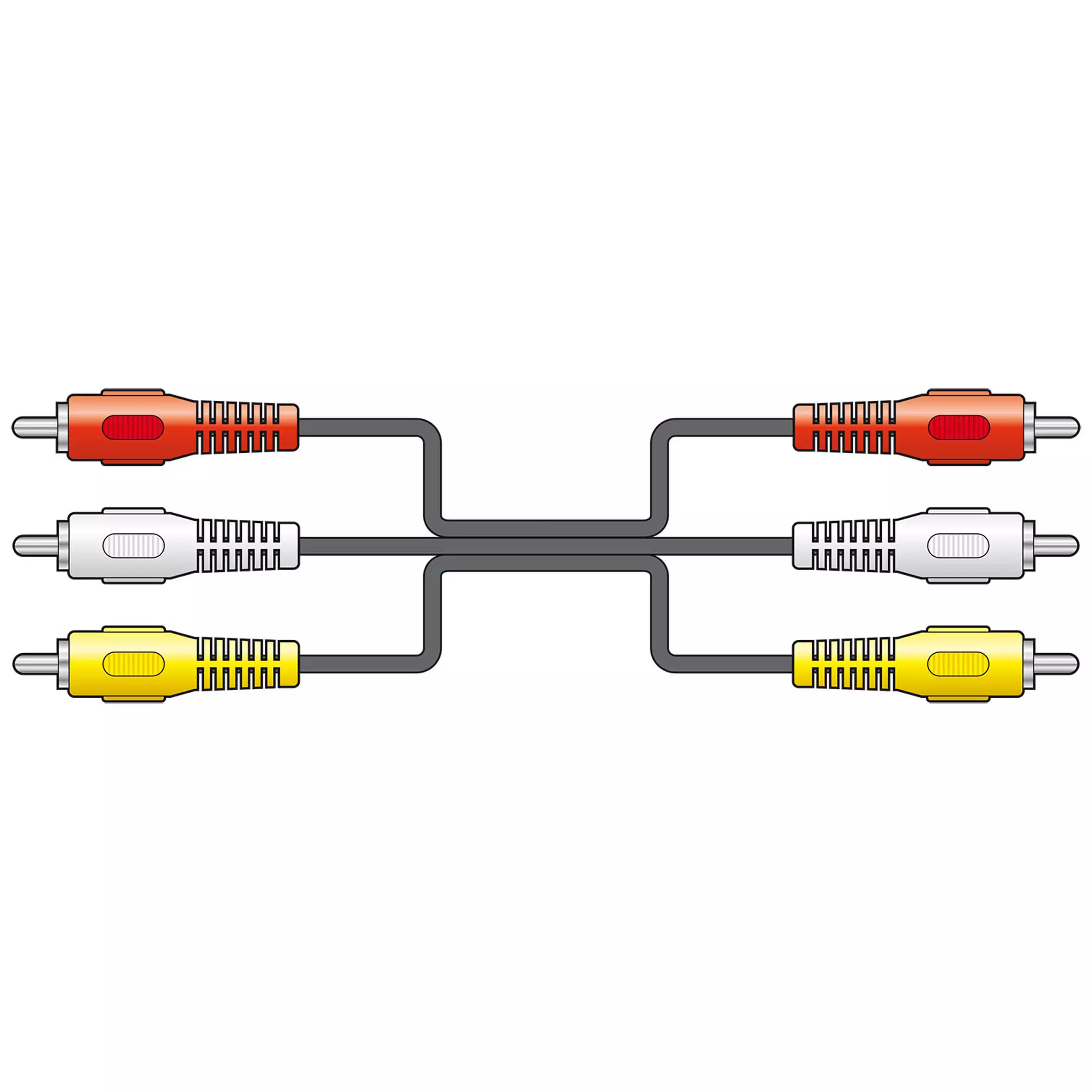 Standard three RCA phono plugs to three RCA phono plugs lead, ideal for stereo sound and video connection.