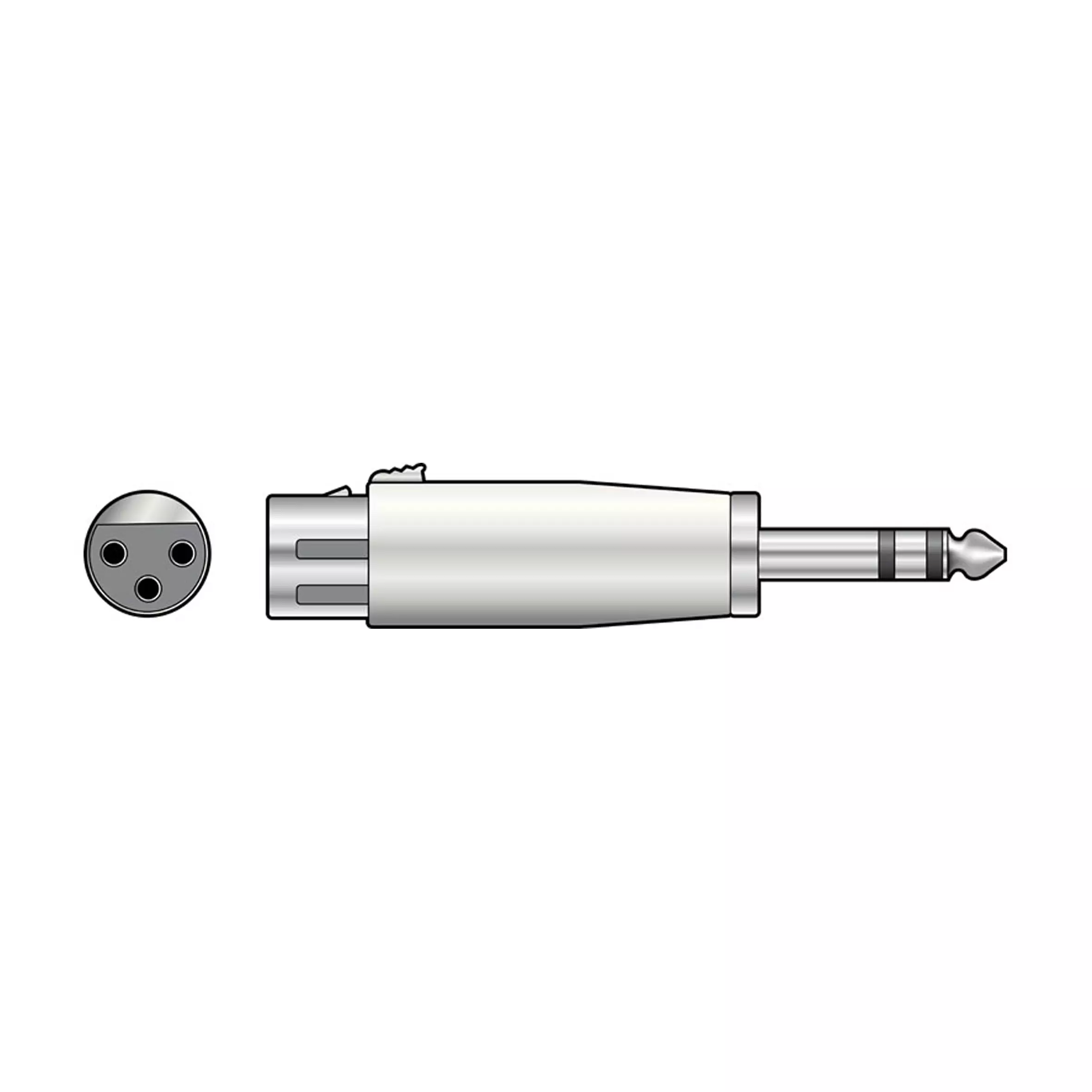 Adaptor for connecting 3 pin XLR female to 6.3mm stereo Jack plug. All metal construction.