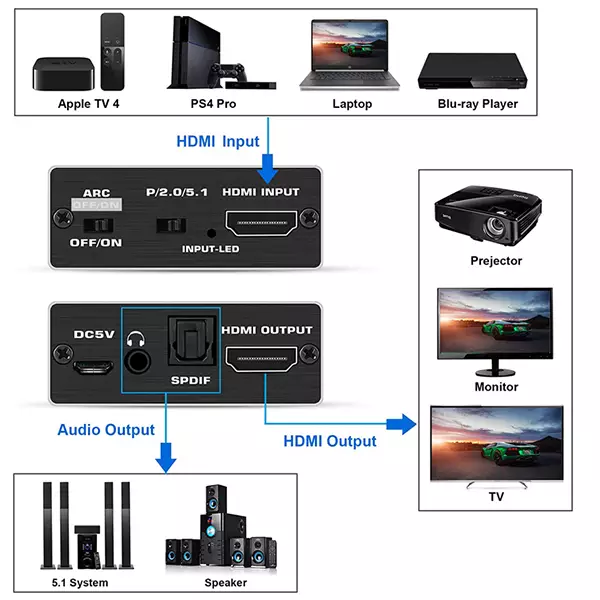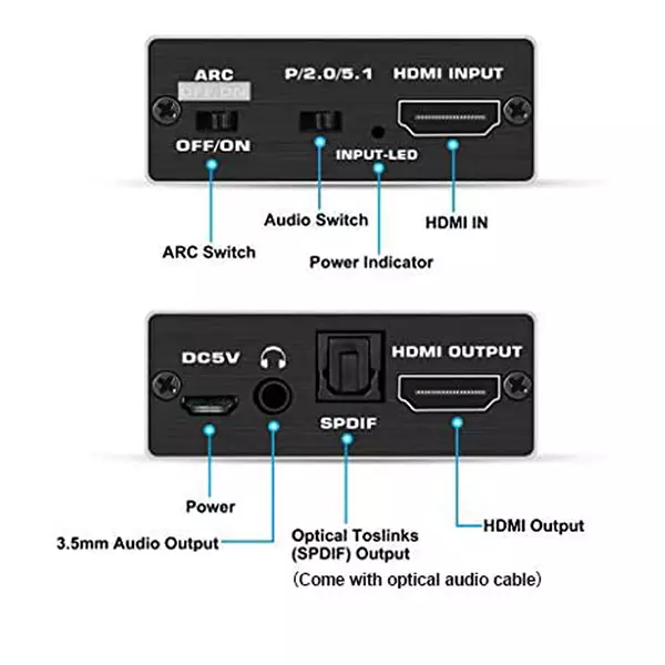 HDMI Audio De-Embedder designed for consumer and commercial applications. High Speed signal transfer means no latency on output . There are 3 Audio output modes available
