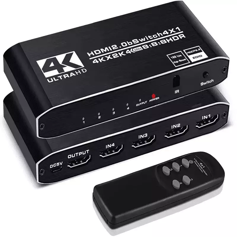 The 4-port HDMI switch supports HDR10 and HDCP 2.2 (backward compatible with HDCP 1.4 and 1.3). It also supports HDMI 2.0b (RGB 4:4:4) and deep color with 36 bits per channel. With a resolution of 4K at 60Hz, it accommodates various devices such as Amazon Fire Stick, Apple TV, gaming consoles, laptops, and more. It features an auto-switch function with remote control, seamlessly transitioning between HDMI sources. Additionally, it ensures Ultra HD resolution, supporting 4K x 2K at 60Hz, Full HD, Full 3D, and various other formats for a superior viewing experience.