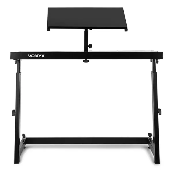 This mobile DJ stand is ideal for mixers, decks, controllers, laptops or other DJ-equipment. The mobile DJ stand is easy to set-up and build out of strong material. The mobile DJ stand has a nice black finish and is fully in height adjustable. The adjustable deck is ideal for your laptop and other small equipment.