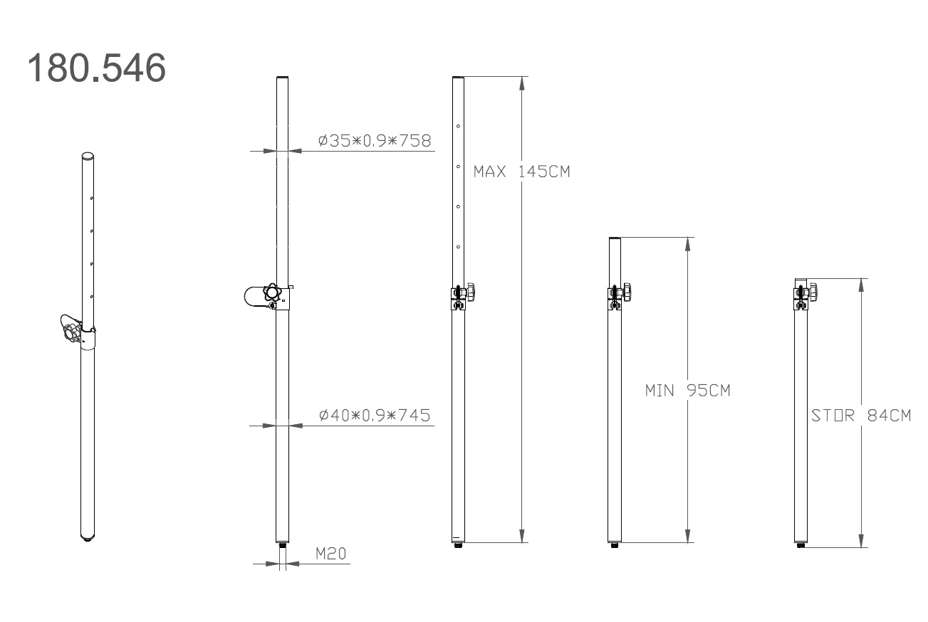 The LST04 is a heavy-duty steel distance rod designed for connecting satellite speaker systems. Equipped with an M20 threaded base, it fits directly onto subwoofers or base plates for a rock-solid and perfectly vertical setup. The adjustable height (90–145 cm) allows you to position your top speakers at the ideal level.