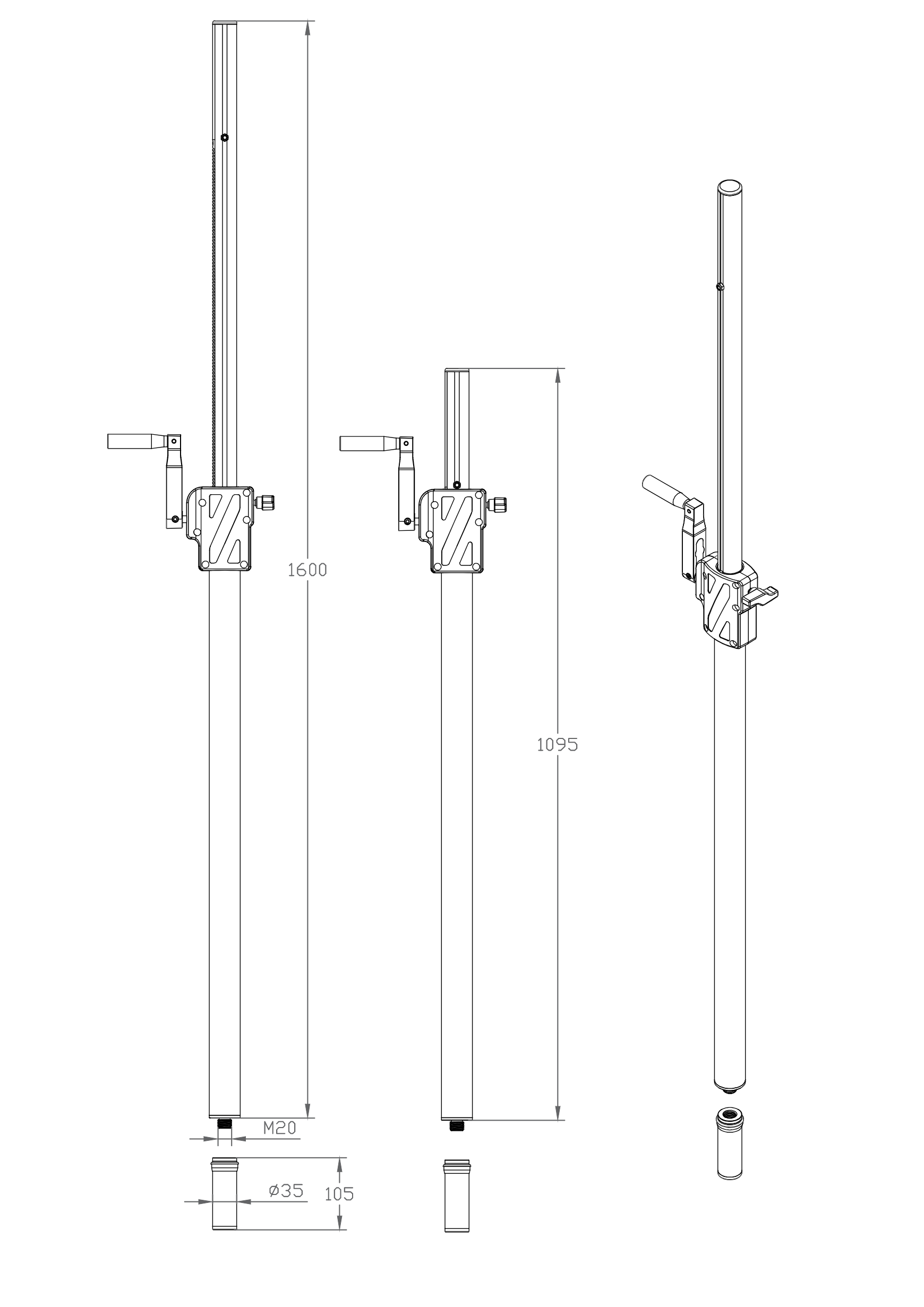 The LST93 is a heavy-duty professional distance rod and is constructed of durable steel. The simple wind up mechanism can be used to safely raise and lower the 2-piece designed tube, even while there is a speaker fitted to it. The tube is suitable for all PA speakers with standard 35mm diameter pole mounts.