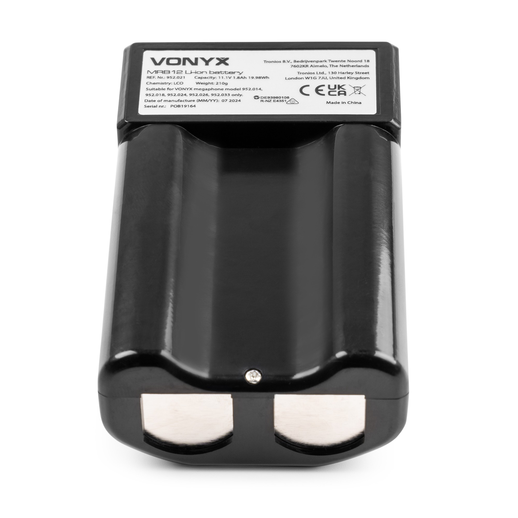 Rechargeable battery pack suitable for use with Vonyx megaphones. The ready-to-use battery replaces the need for eight expensive C-cell batteries, significantly reducing the waste of standard batteries. Supplied with a charging cable and 220V adapter that plugs directly into the mains and provides several hours of continuous power to your megaphone once charged. Perfect for sporting events, parades and emergencies.