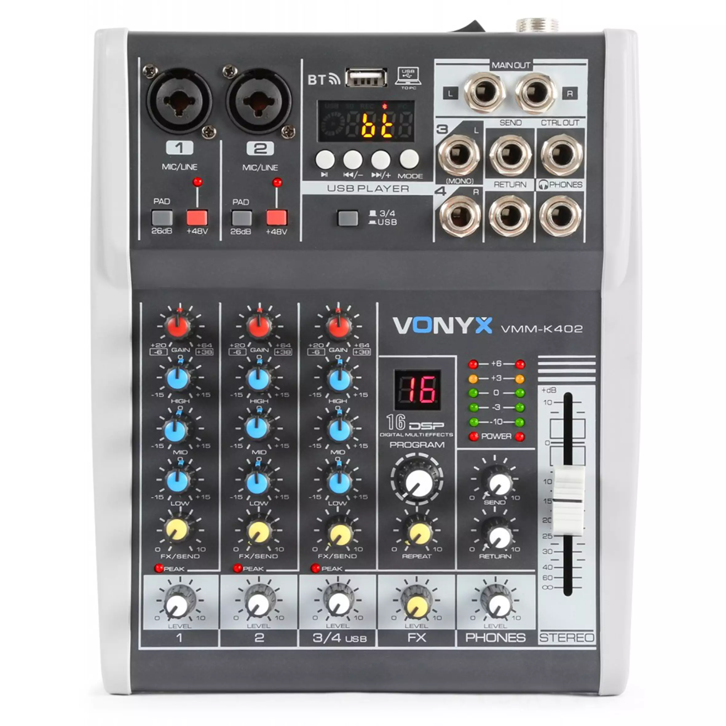 - Stereo balanced main outputs (6.3mm Jack)