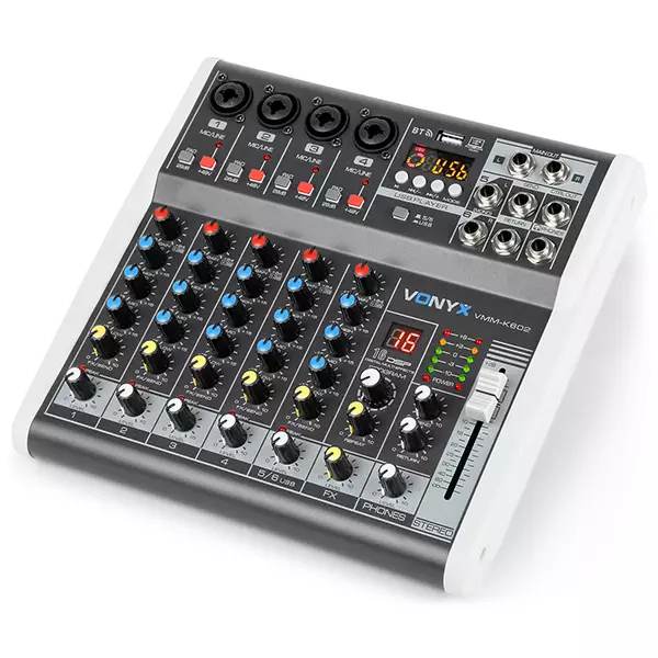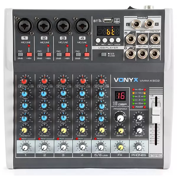 An easy to use and affordable table top design music mixer. With Hi, Mid and Low control for each channel. Individually controllable phantom power per channel making it ideal for live sound and recording purposes.
