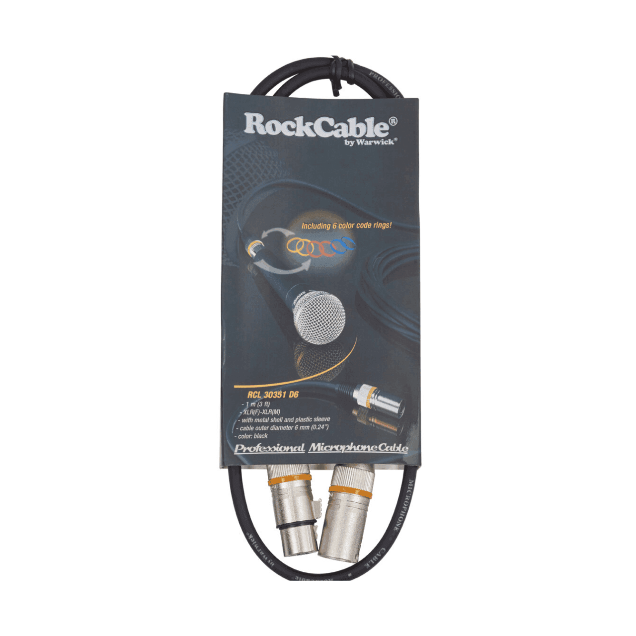 RockCable Microphone Cable – XLR (male) / XLR (female), Color Coded – 1 m / 3.3 ft