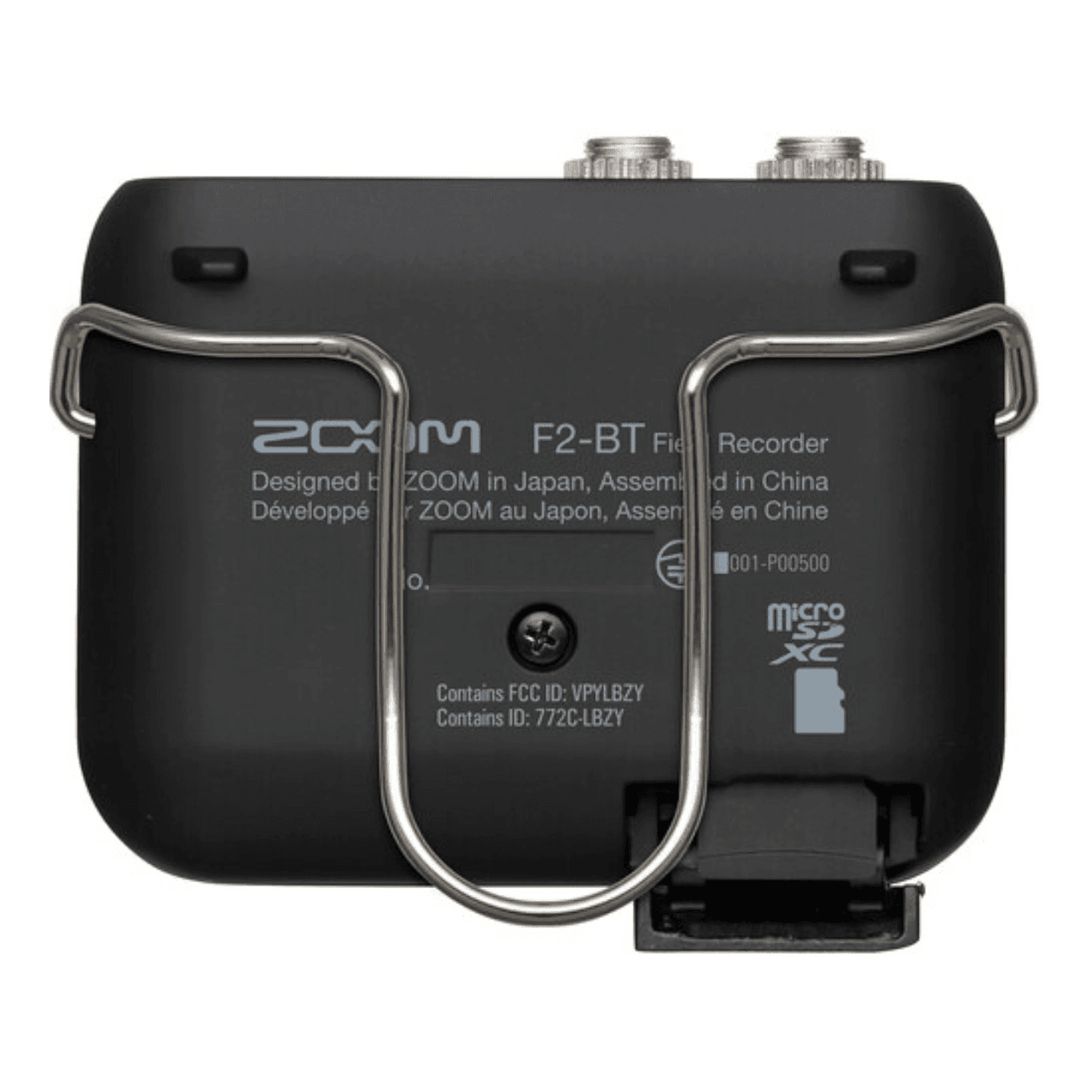 The F2-BT comes with built-in Bluetooth. And with the free Zoom F2 Control app (for iOS / Android ) the F2-BT can wirelessly start/stop recordings, display battery levels, adjust output volume, control lo-cut and more.